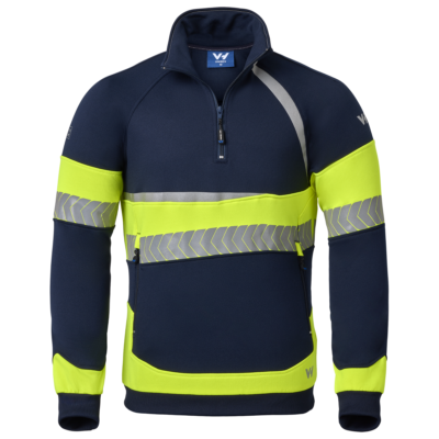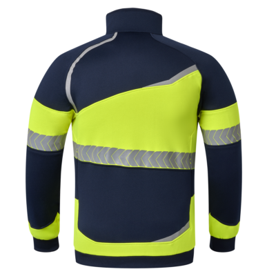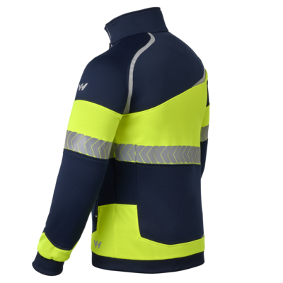 2 teilweise diagonale und horizontale versiegelte Reflexionsstreifen auf Vorder- und Rückseite sowie an den Ärmeln